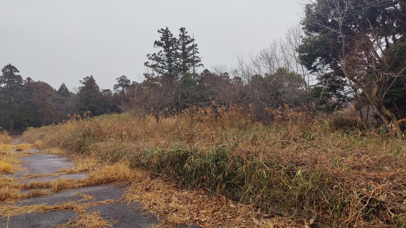 30万円の売地が広告に出されていた茂原市弓渡の放棄分譲地。道路は舗装されているが、電柱はない(2024年2月撮影)