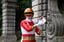 チェンジドラゴンのスーツでポーズを決めるダニー・ツルギさん