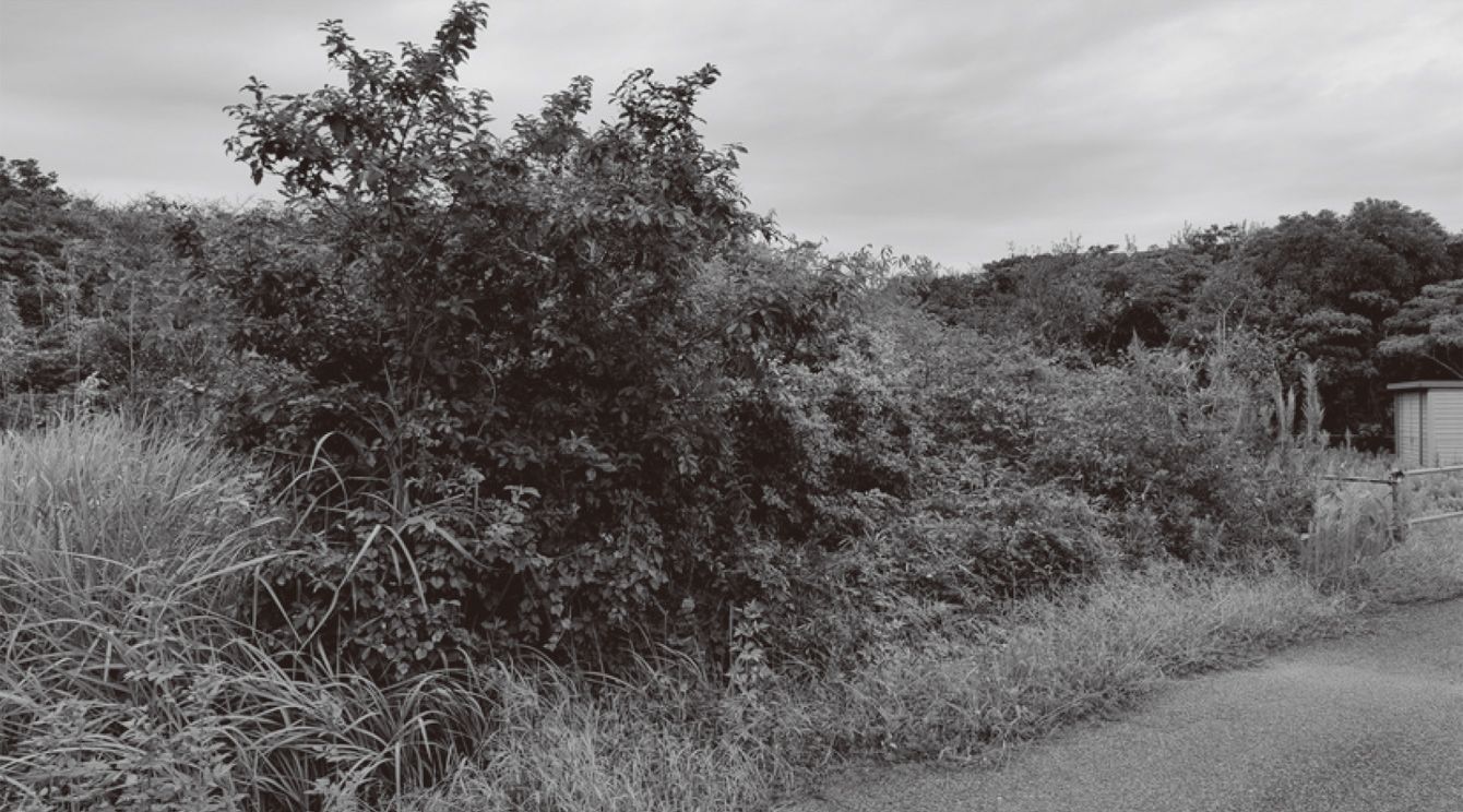 長年放置されている空き区画。更地の状態で分譲されたはずだが、今は雑木が生え、足を踏み入れる余地もない。(出所=『