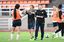 通訳のアリエヴァ・マヒリヨさん(中央)は、本田監督の取り組みにより、選手が変わってきていると感じている。