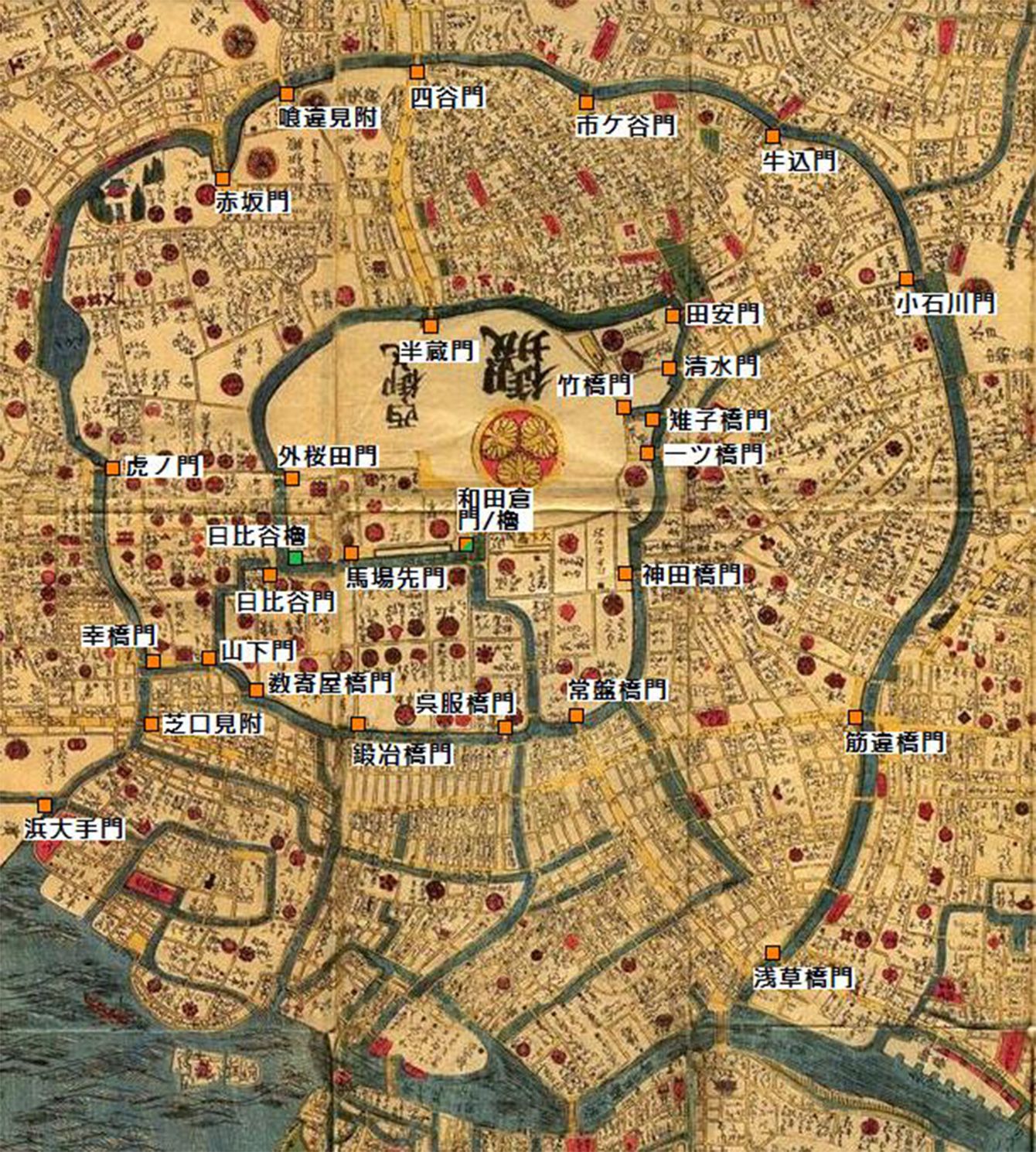 江戸城の門と櫓の配置(外郭)(写真=Tateita/GFDL/