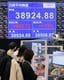 終値の史上最高値を上回った日経平均株価を示すモニター=2024年2月22日午前、東京都千代田区
