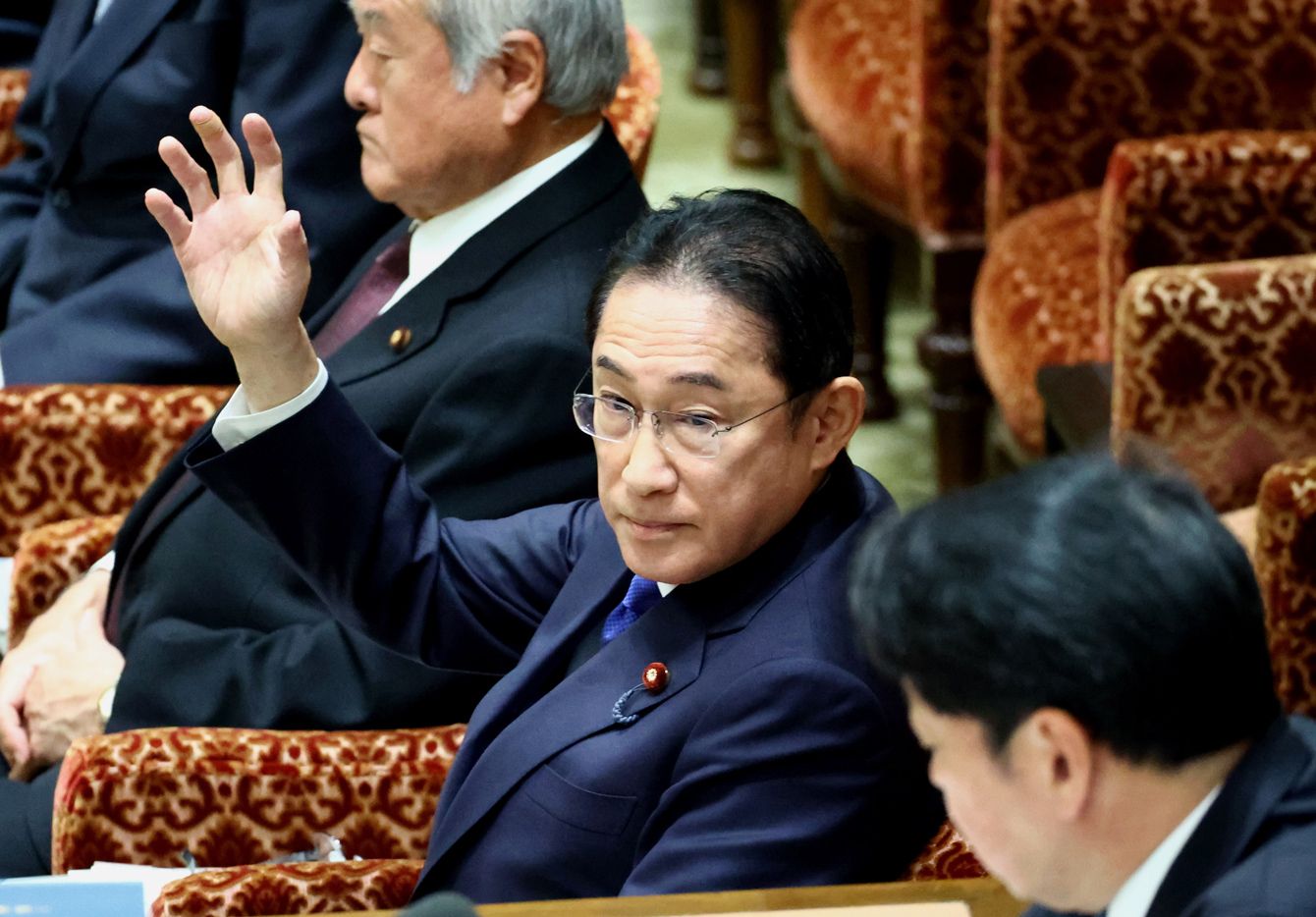 衆院予算委員会で挙手する岸田文雄首相=2024年2月26日、国会内