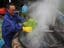 選別・脱穀したホウキモロコシを釜茹でにする。穂先から、芯から、それぞれ十数秒ほど。ホウキモロコシはあっと言う間に鮮やかな緑色に変わった