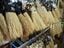 刈り取ったホウキモロコシを選別するスタッフ。大きさ、長さ、縮れ具合を1本ずつ確認する