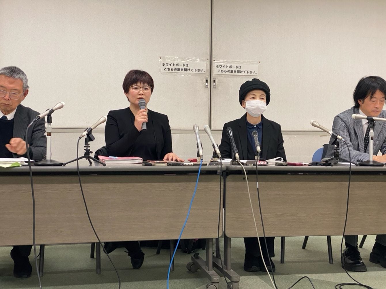 記者会見をする叡敦さん(中央右)