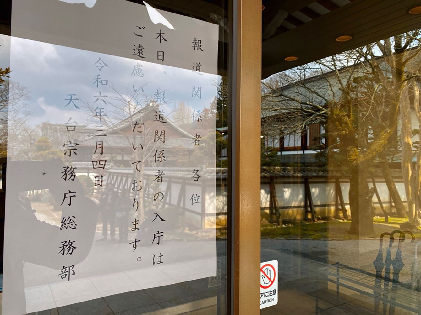 報道陣をシャットアウトする張り紙