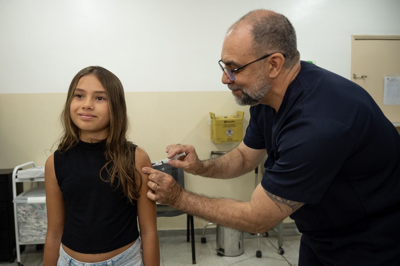 スザノ市の保健所にワクチンを接種しにきた小学6年生のアナ・ラウラさんと母