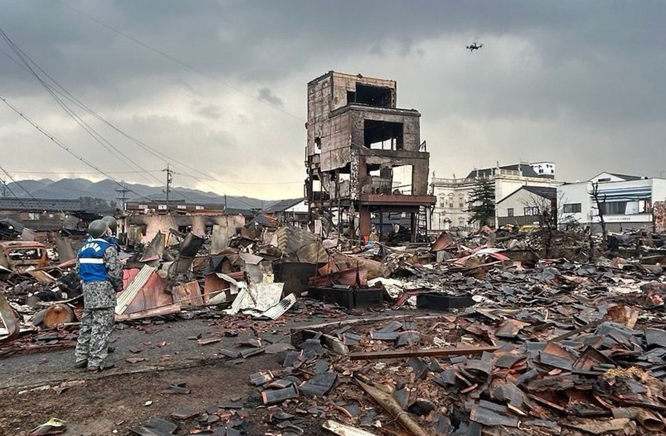 被災した輪島朝市の跡地で捜索活動を行う自衛隊(画像=航空自衛隊/CC-BY-4.0/