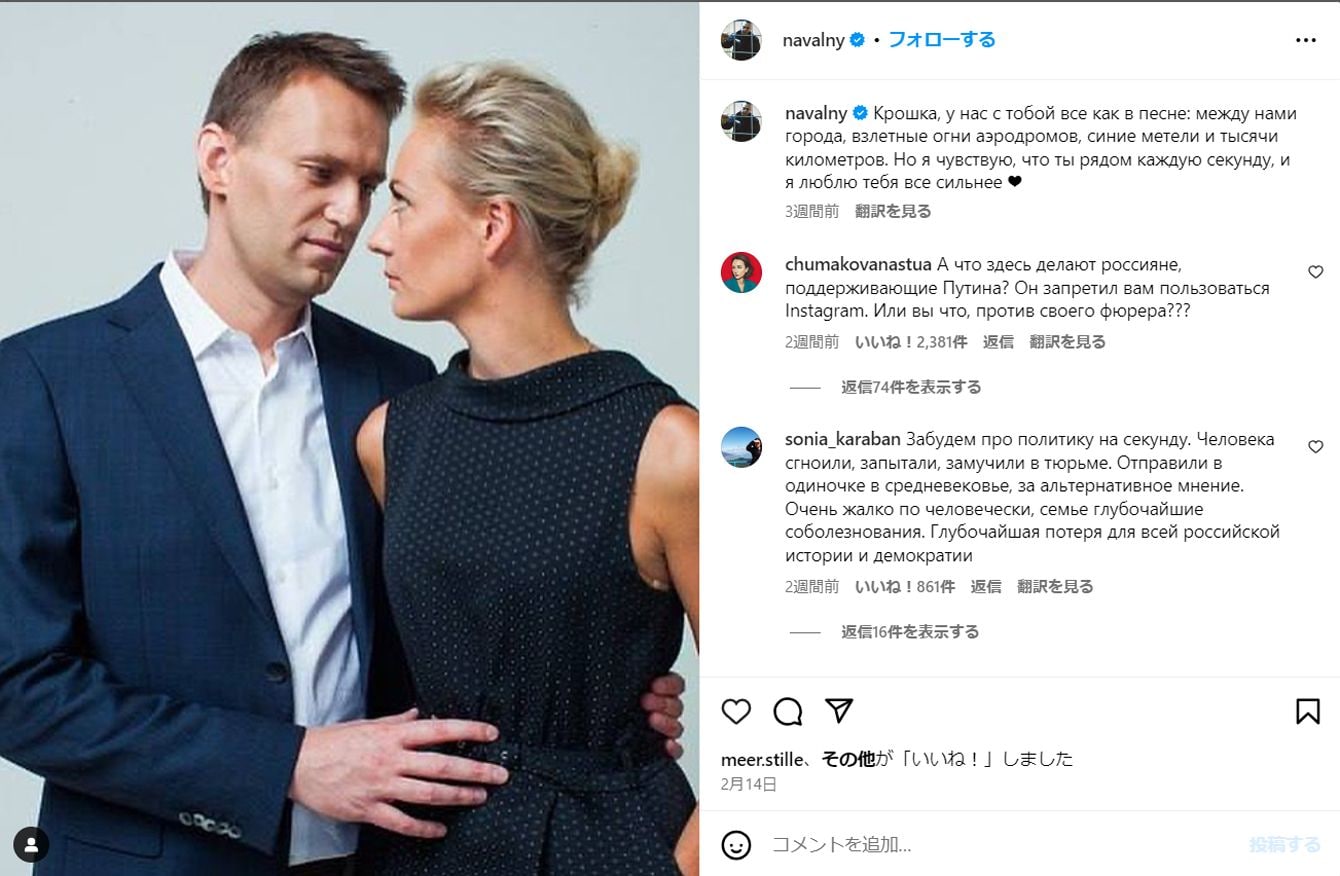 ナワリヌイ氏のInstagram
