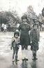 ミニスカートをはく40歳ごろの山田火砂子さん(中央)と、長女の美樹さん(右)、次女(左) 写真提供=現代ぷろだくしょん