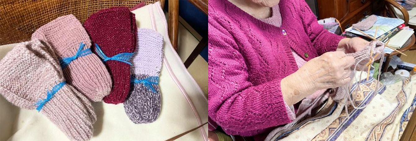 取材班もいただいた、手編みの靴下。ものすごく暖かい