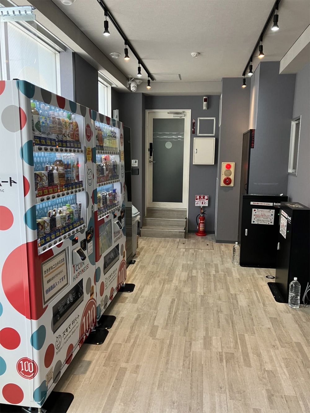 喫煙所には自社の自販機が設置されている。重要な収入源だ