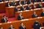2024年3月11日、北京で開かれた中国の全国人民代表大会(全人代)の閉幕式で、議案可決後に拍手する習近平国家主席(中央)