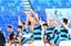 入れ替え戦後の胴上げ