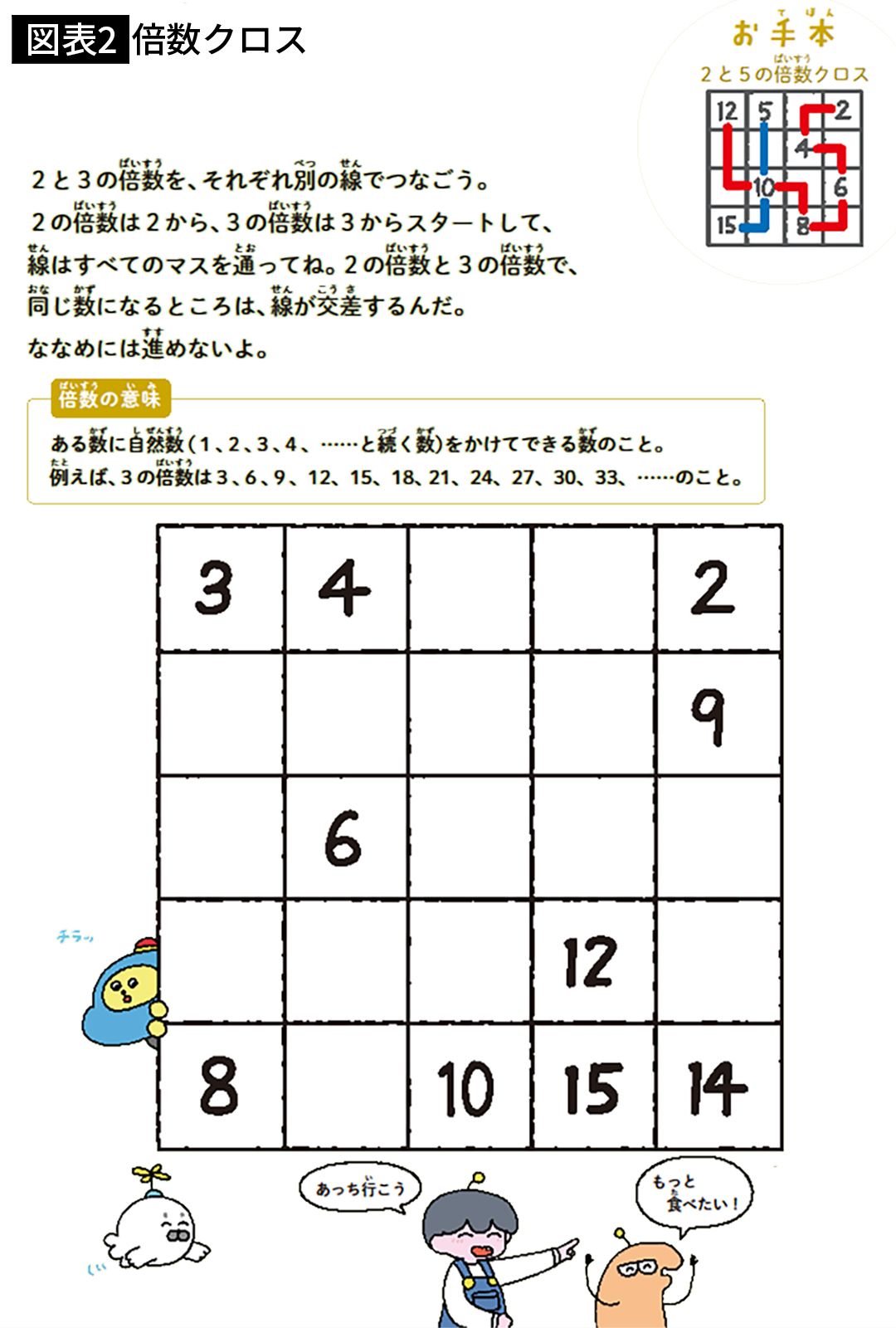 左が数字つなぎ、右が倍数つなぎ。りんご塾のパズルをまとめたドリル『