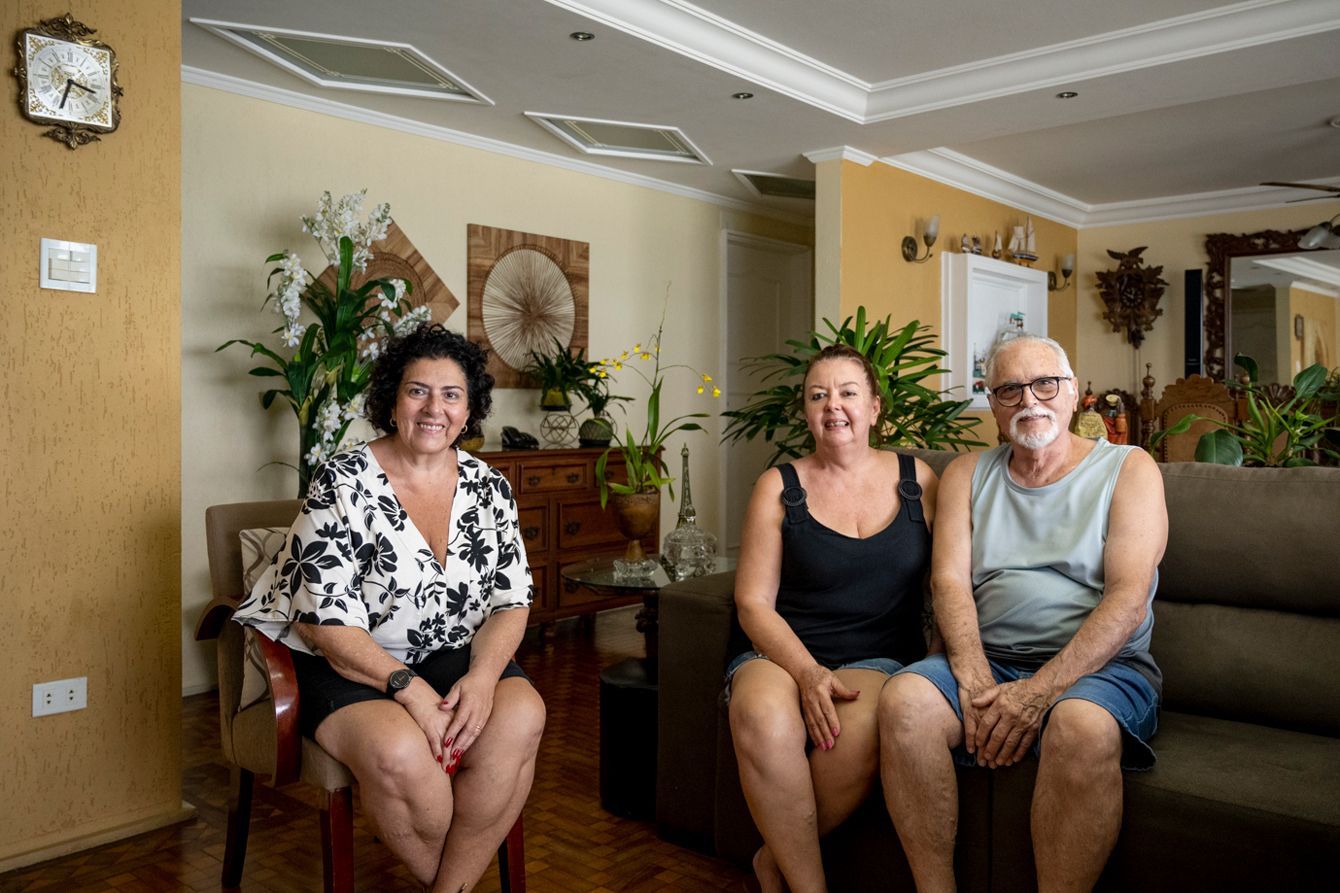 住民代表のマリア・イネス・シェディッドさん(左)と部屋の所有者のペリン夫妻
