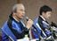 小型衛星ロケット「カイロス」の打ち上げ失敗について記者会見するスペースワンの豊田正和社長(手前)=13日午後、和歌山県那智勝浦町