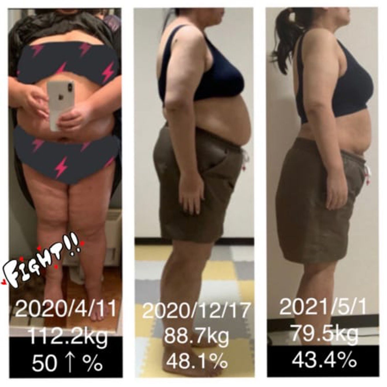 88kg→56kgの変化の様子。全身引き締まったのがわかる。