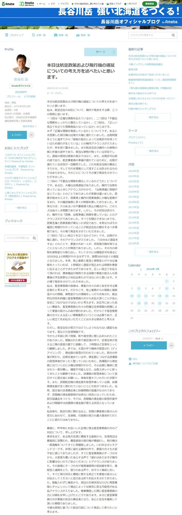 画像=参議院議員 長谷川岳 オフィシャルブログ「