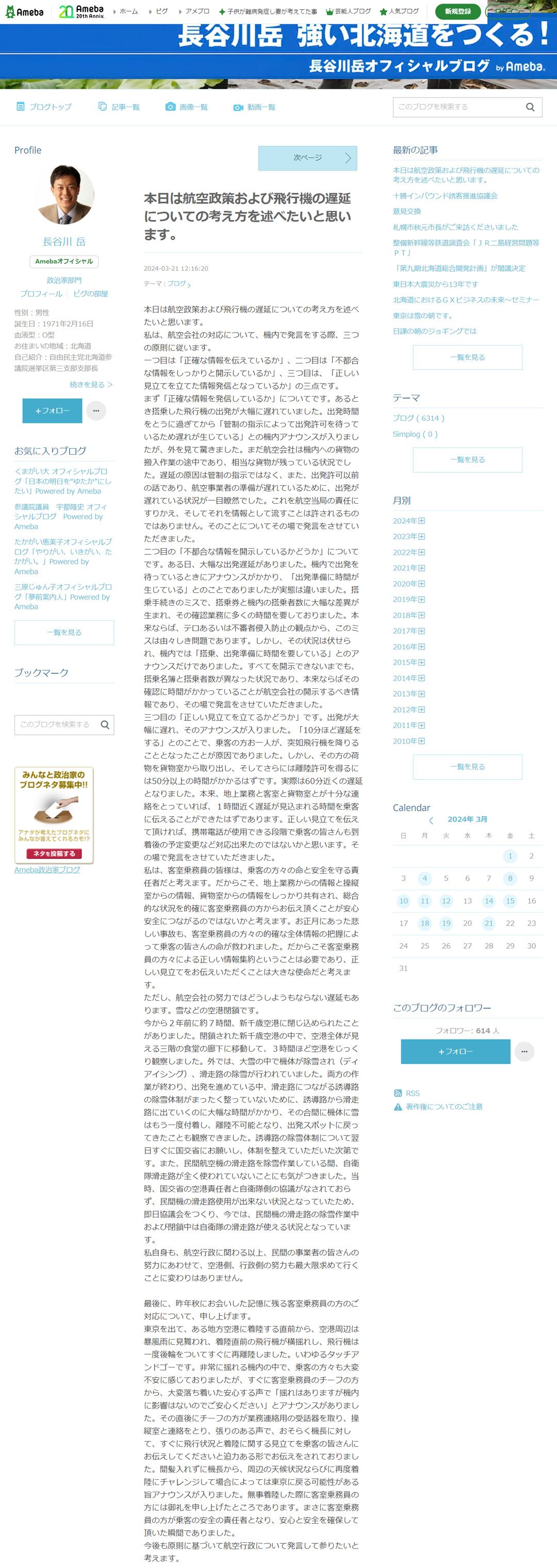 画像=参議院議員 長谷川岳 オフィシャルブログ「