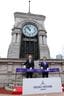 「セイコーハウス銀座」のオープニングイベントでテープカットするセイコーホールディングスの服部真二会長(右)と高橋修司社長=2022年6月8日、東京都中央区