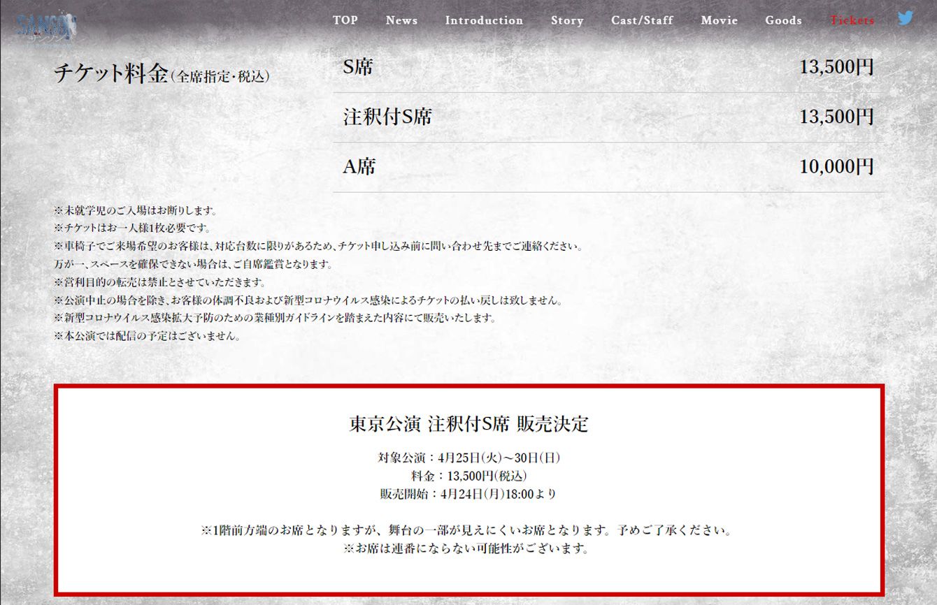 注釈付きS席の販売決定を伝える記事(