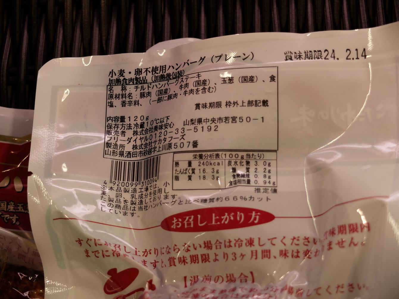 現在販売している「美味安心」のハンバーグ。表記面には食品添加物の文字がない