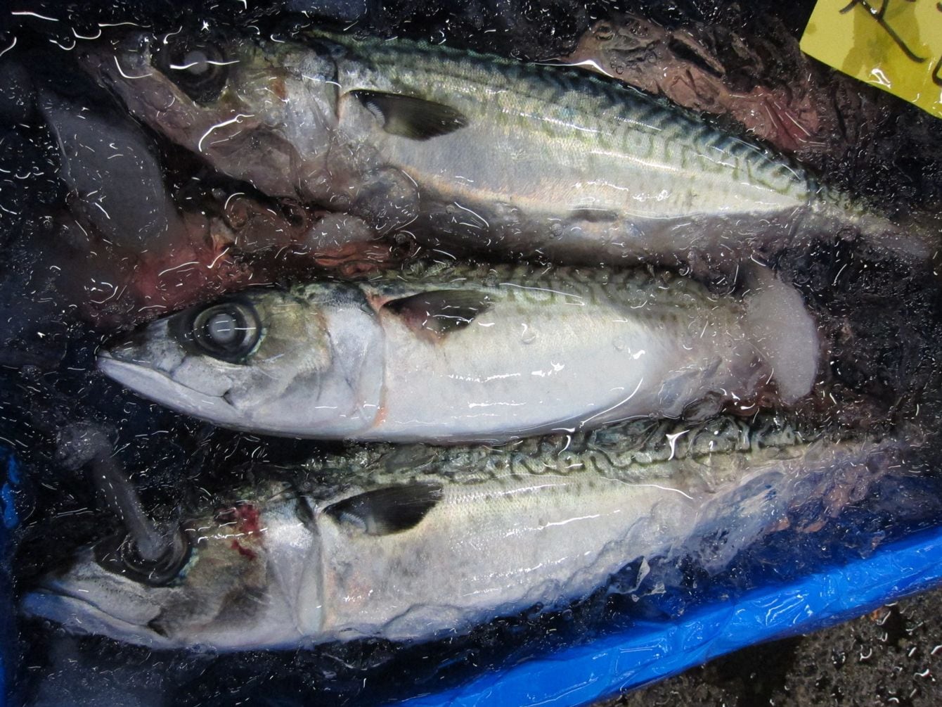大型で脂が乗った国産のマサバ(豊洲市場)