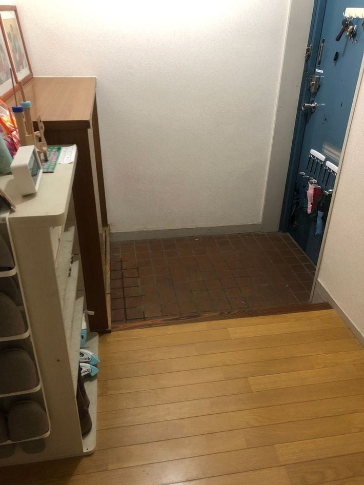 玄関にはマグネットで、玄関ドアにはマグネットで鍵、入館証、印鑑、虫よけスプレー、折り畳み傘などを収納している。