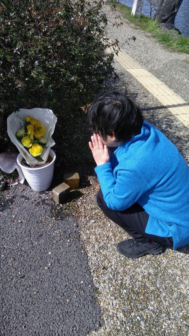 4年目の命日を前に、現場に花を手向ける母親の喜美江さん(写真提供=坂本さん)