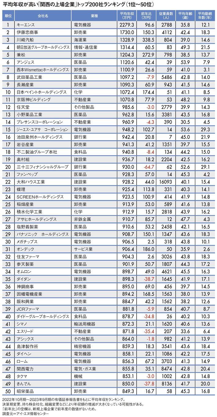 3位は川崎汽船、2位は伊藤忠商事、では1位は…平均年収が高い「関西地方トップ200社」ランキング2023