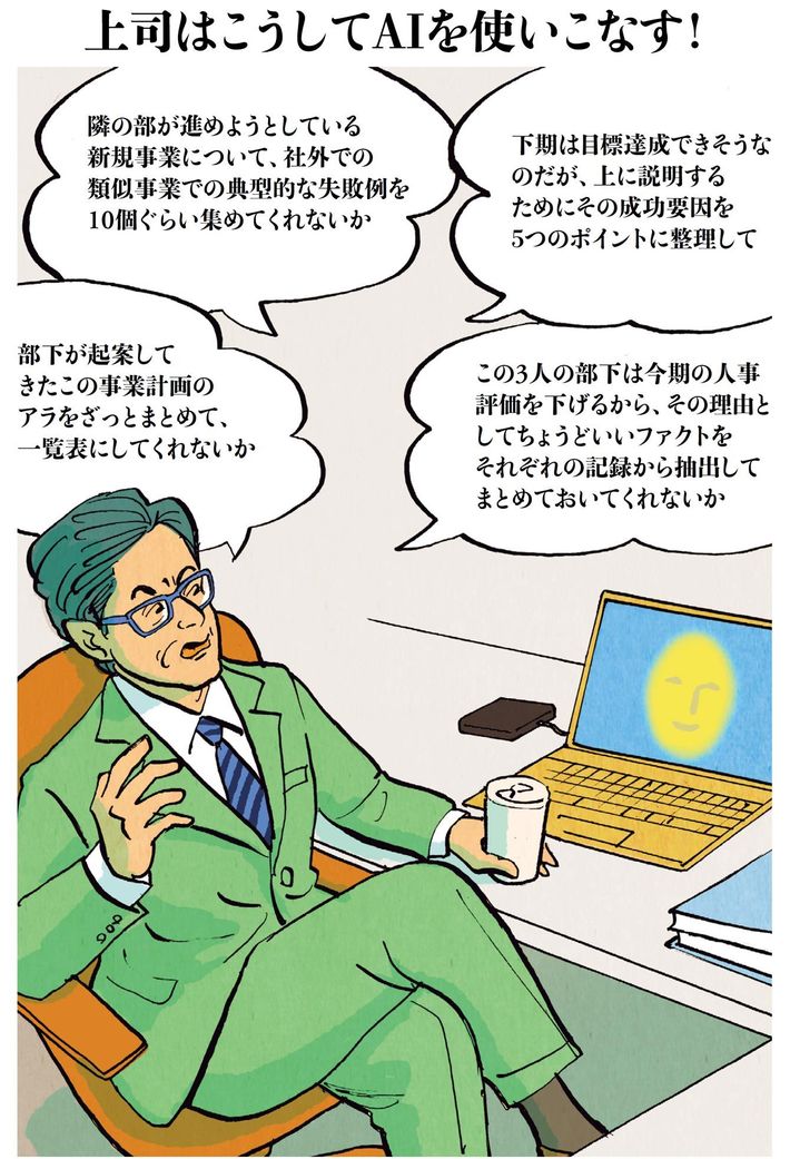 生成AIに仕事のアドバイスを求めるのが日常になり、最適な仕事のツールとして用いるようになった上司のイメージ。※出典=鈴木貴博著『