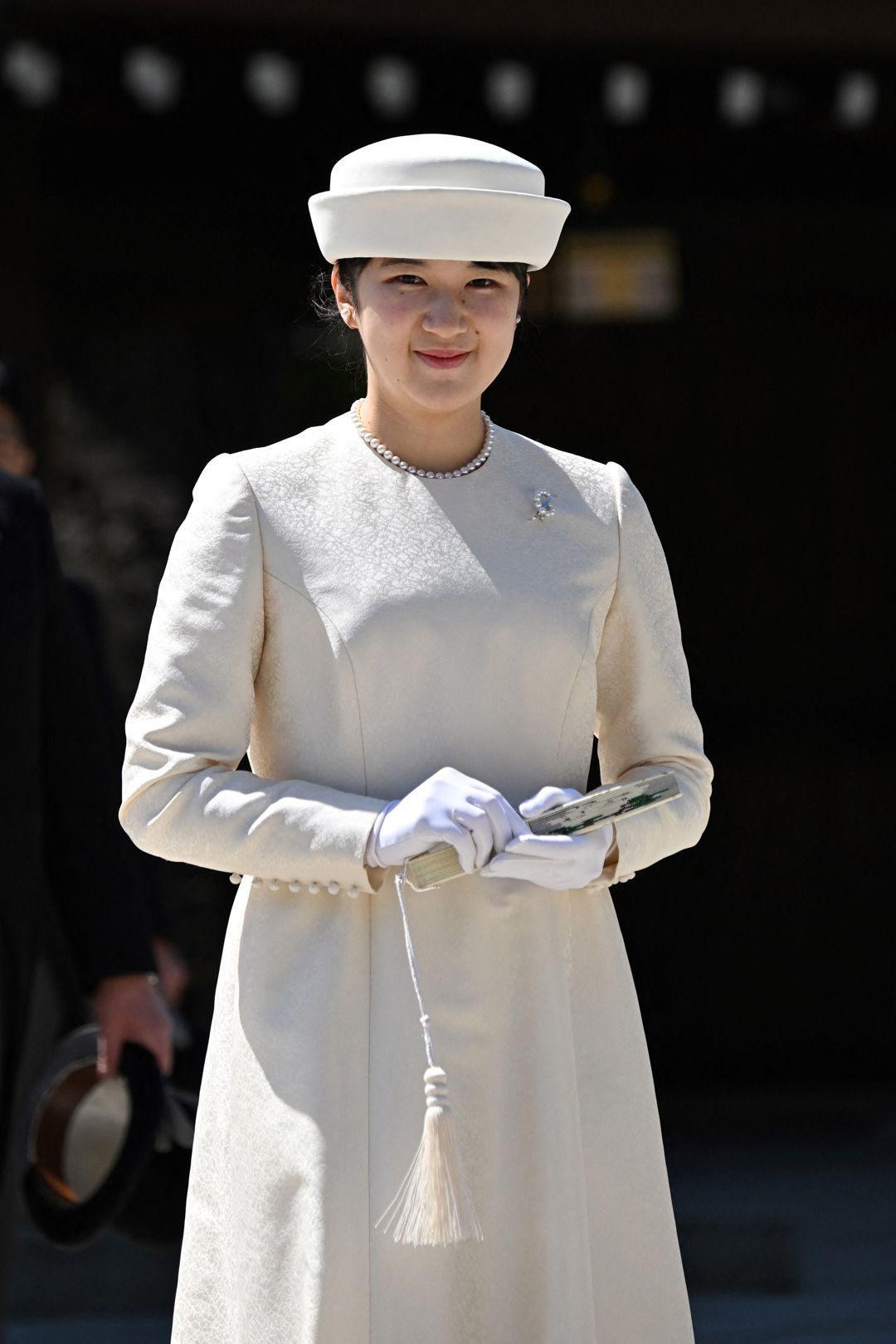 昭憲皇太后が亡くなってから110年となるのを前に、明治神宮を参拝される天皇、皇后両陛下の長女愛子さま=2024年4月10日午前、東京都渋谷区