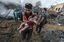 2023年10月25日、ガザ市でのイスラエルによる空爆後、破壊された地域の瓦礫の中から拾い上げた負傷した赤ん坊を運ぶパレスチナ人男性