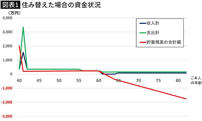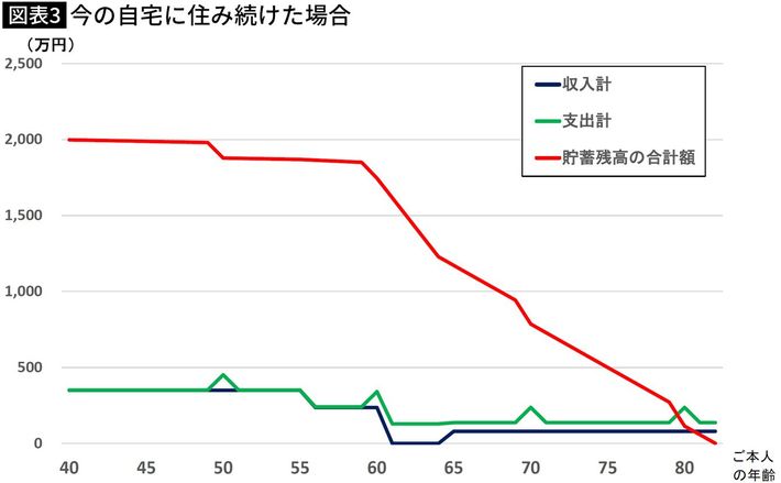 ※駅近の中古分譲マンションに住み替えず、現状の戸建て住宅に3人で暮らせば、長男が83歳のときに貯蓄が底を突く(同上)