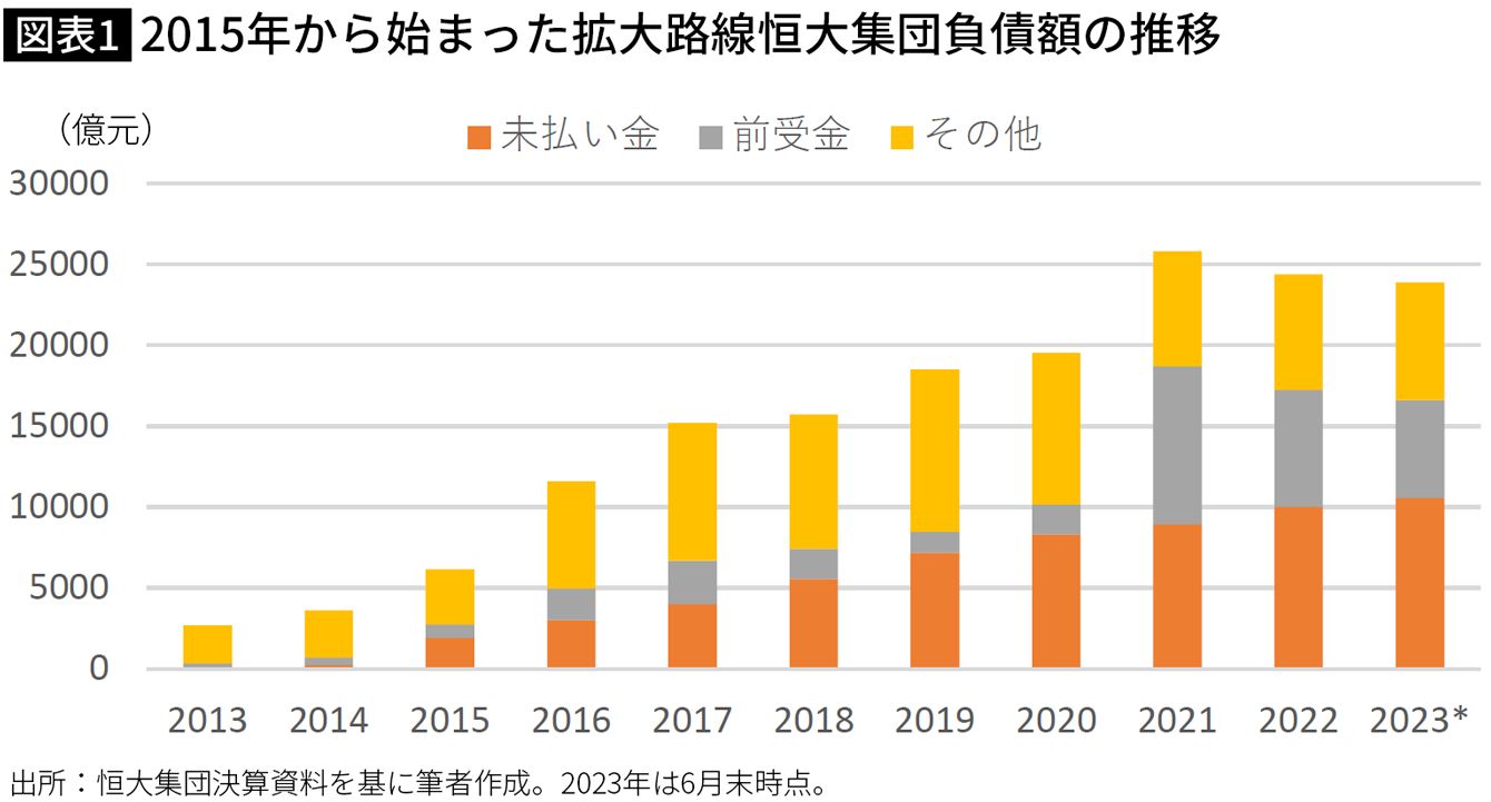 2015年から始まった拡大路線。恒大集団負債額の推移 ※2023年は6月末時点での数値