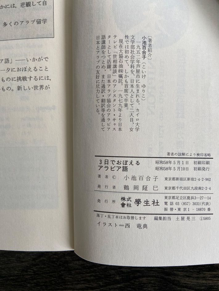 『3日でおぼえるアラビア語』奥付にはカイロ大学文学部社会学科を「首席で卒業」とある