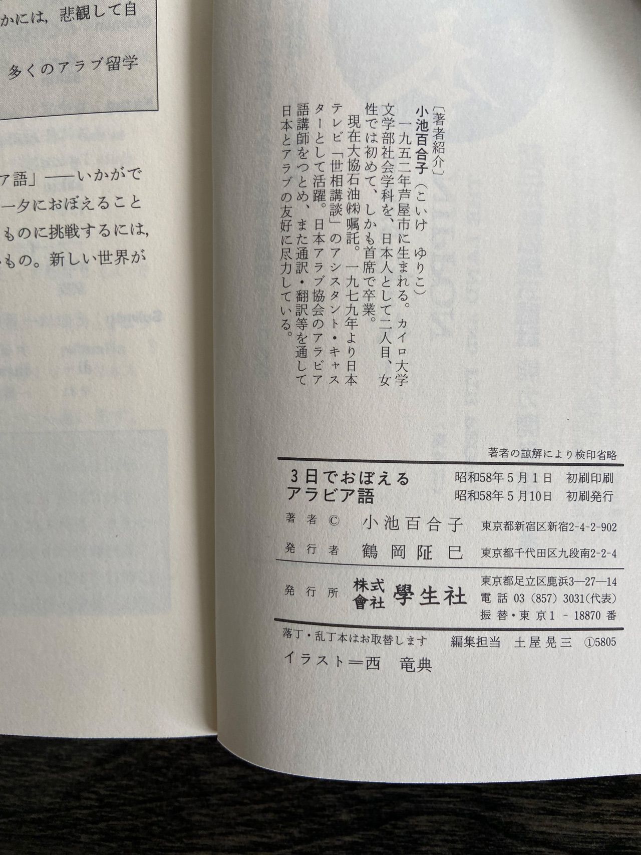 小池氏の著書『3日でおぼえるアラビア語』(学生社)の表紙
