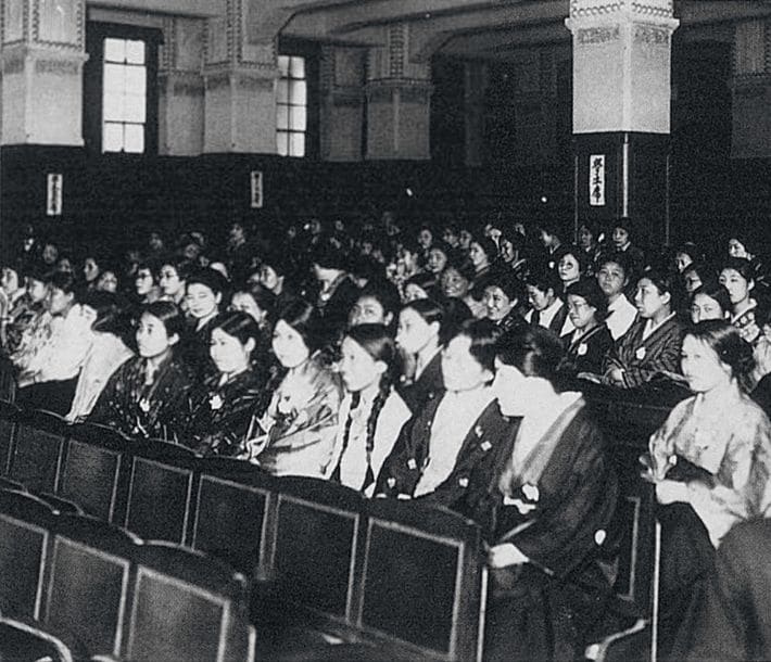 1929年の明治大学女子部開校式、『明治大学百年史』 第二巻 史料編II、1988年(写真=明治大学百年史編纂委員会/PD-Japan-oldphoto/