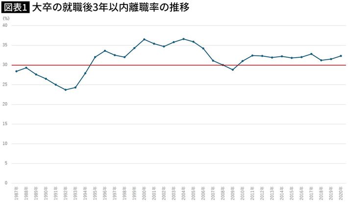 厚生労働省「新規学卒就職者の離職状況」を基にプレジデントオンライン編集部作成