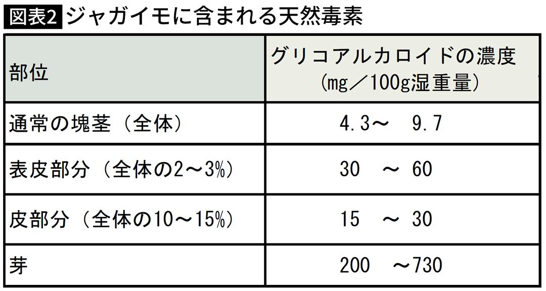 の消費者への注意喚起。皮を剥くのがリスク低減に効果的であることや、茹で調理で湯にグリコアルカロイドの一部がうつること、フライ調理でも油に一部が移行して、摂取量を低減できることなどを伝えている