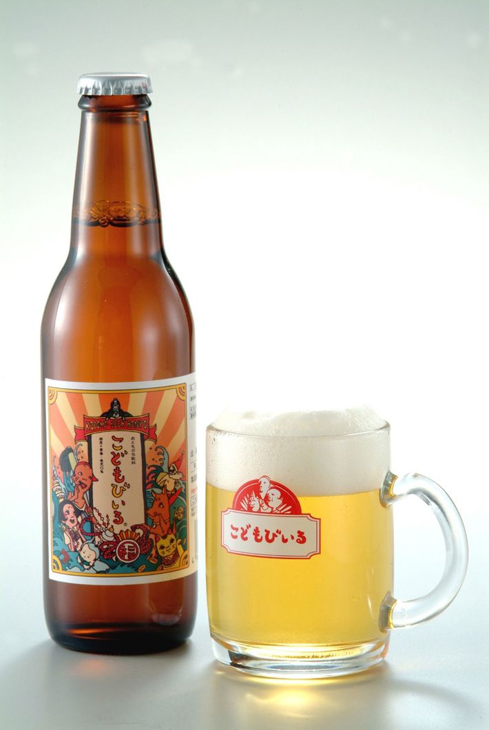 浅羽さん夫妻が考案した「こどもびいる」。発売から20年を迎え、これまで1000万本以上が売れた