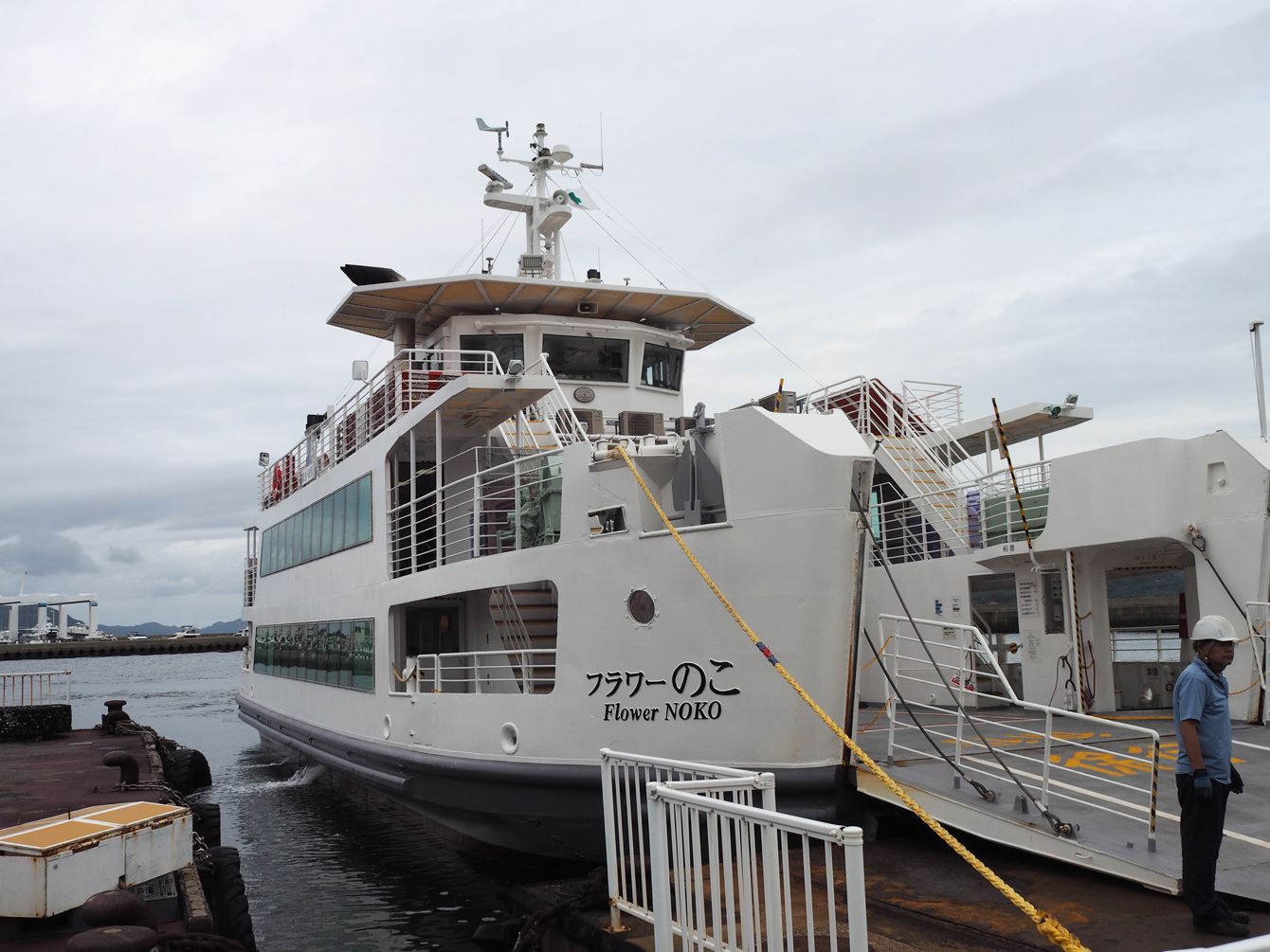福岡市営の渡船「フラワーのこ」。全長31.2メートル、全幅10メートル、169トン。