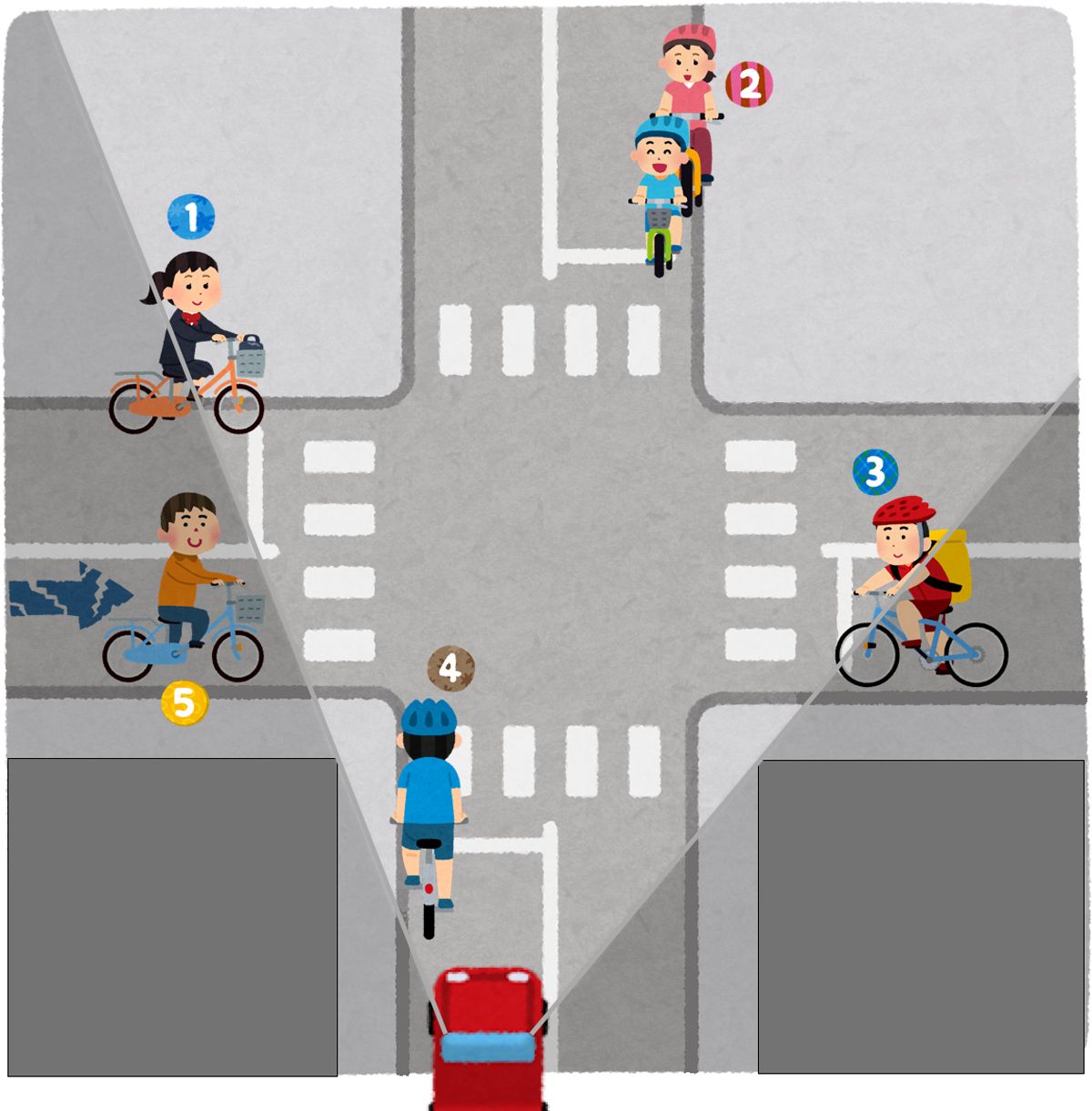 【画像3】⑤’歩道を右側通行する自転車がもっとも危険