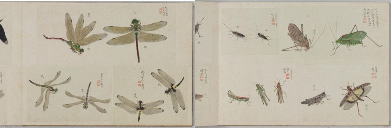 建長寺の虫塚の周囲は石でできた昆虫の像が置かれている
