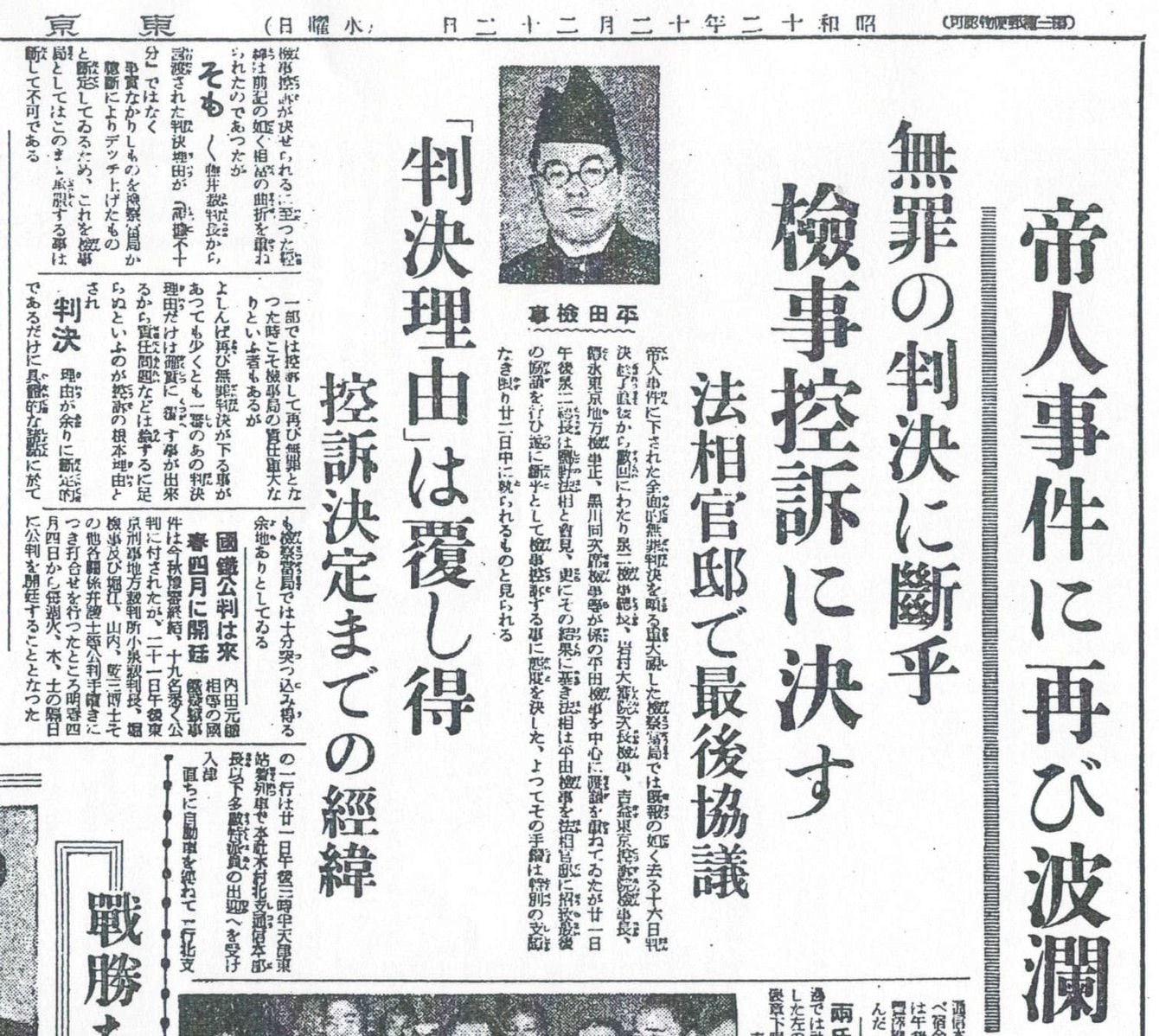 検察の横暴で起訴された帝人社長ら16人は全員無罪に…朝ドラの元ネタにもなった「帝人事件」驚きの真相