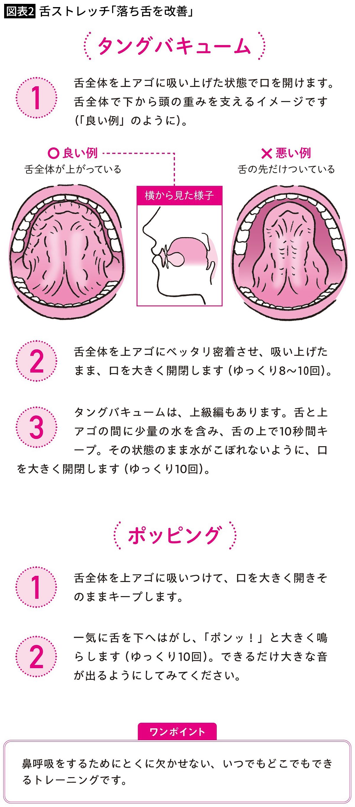 舌を正常な位置に戻し、舌の上アゴへの密着を習慣化する(『
