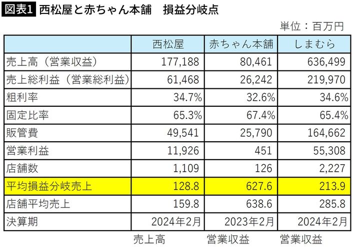 西松屋は有価証券報告書、赤ちゃん本舗はセブン&アイHD、決算公告より(図表=筆者作成)