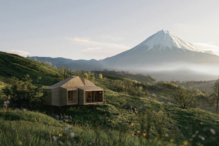 新型施設「SANU CABIN MOSS」の完成イメージ。白馬・ニセコ・南アルプスなど豪雪地帯を含む7つの山岳地域へ展開予定